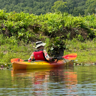 In 2022, PRWC supported a project to treat the infestation with an approved aquatic herbicide to reduce the plant population enough that it that would be able to be managed solely by hand-pulling in subsequent years. In 2024 & 2025, PRWC volunteers and staff were successful in manually removing over 520 bushels (approx. 13,000 lbs) of European water chestnut plants and seeds from Lake Stibbs and the downstream systems of Transylvania Brook, Pomperaug River, and Lake Zoar through water chestnut pulling days, paddling programs, and stream walks.
